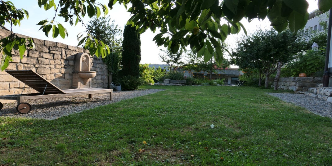 Das Studio mit 30 m^2 bietet nicht nur direkten Anschluss zum Garten sondern verfügt auch über einen privaten Eingang und einer eigenen Waschmaschine. Zurzeit ist das Studio vermietet.